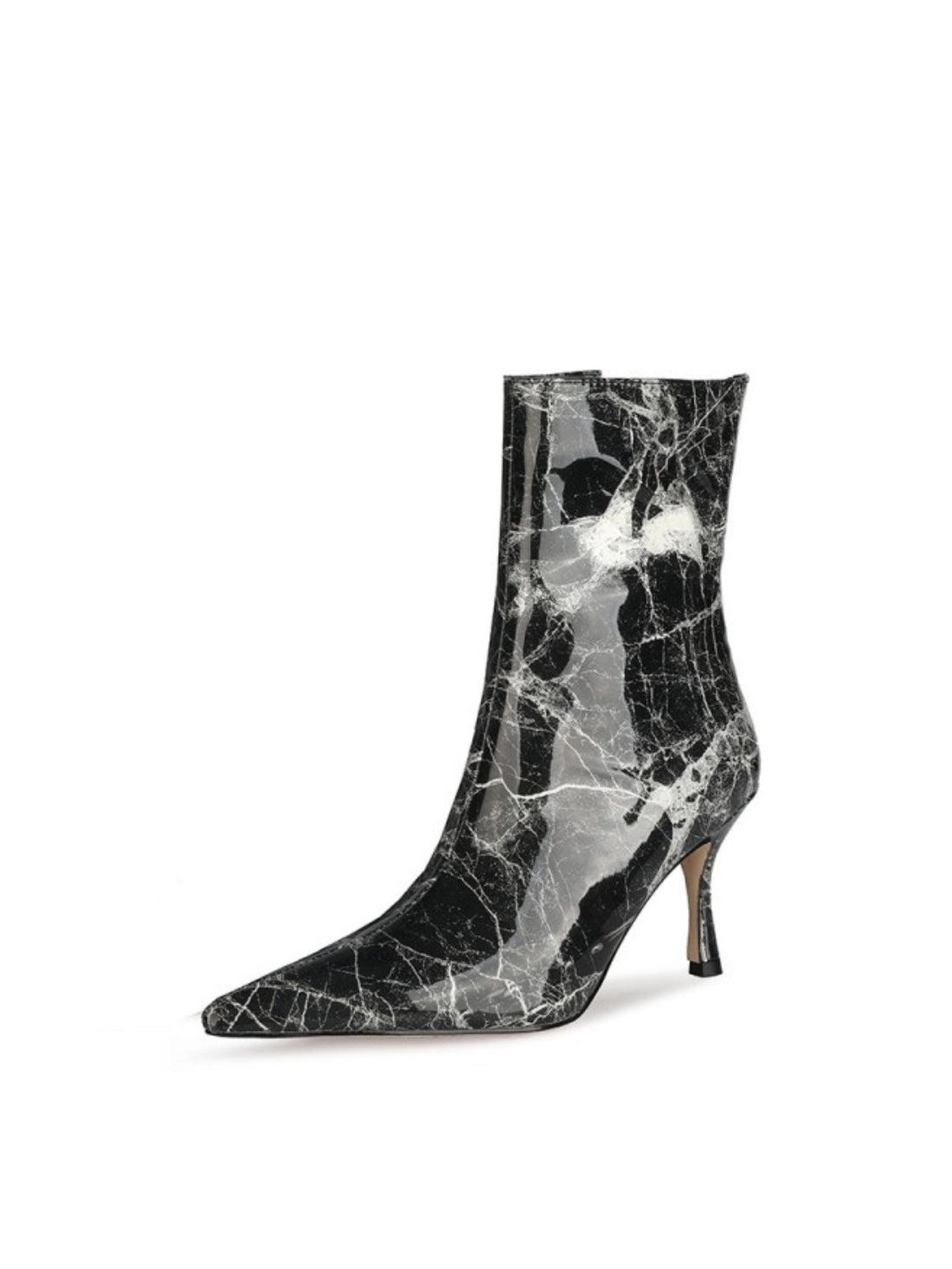 Black Marble Print Pointed Toe Ankle Short Boots for Women