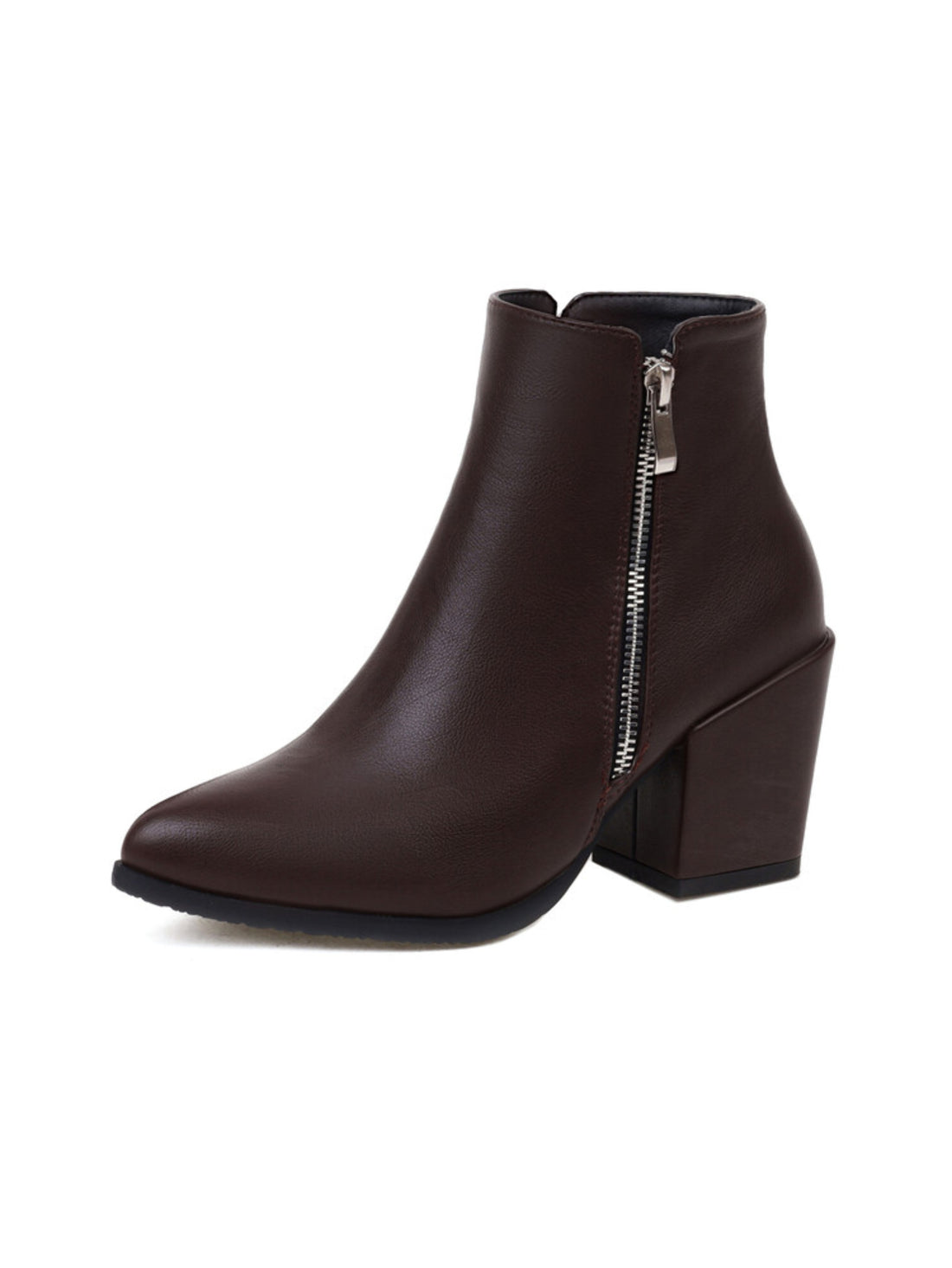 Classic Chocolate Brown Mid-Heel Ankle Boots for Women