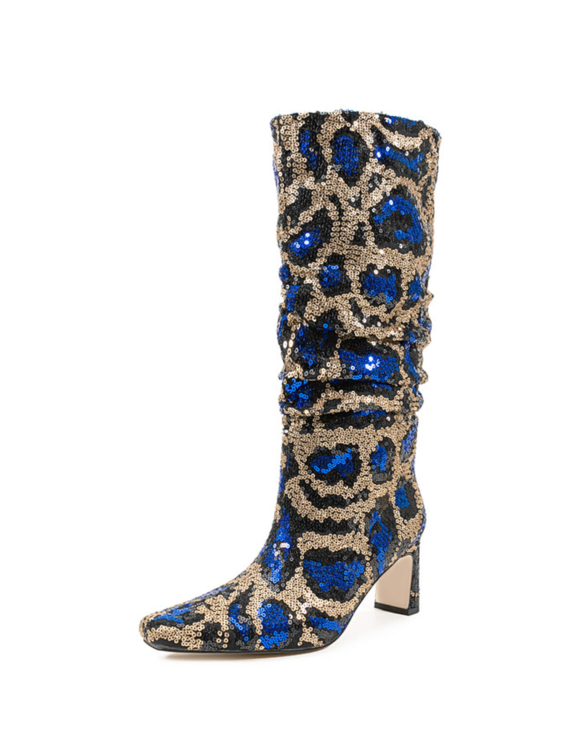 Blue and Gold Sequin Slouch Mid Calf Fashion Boots