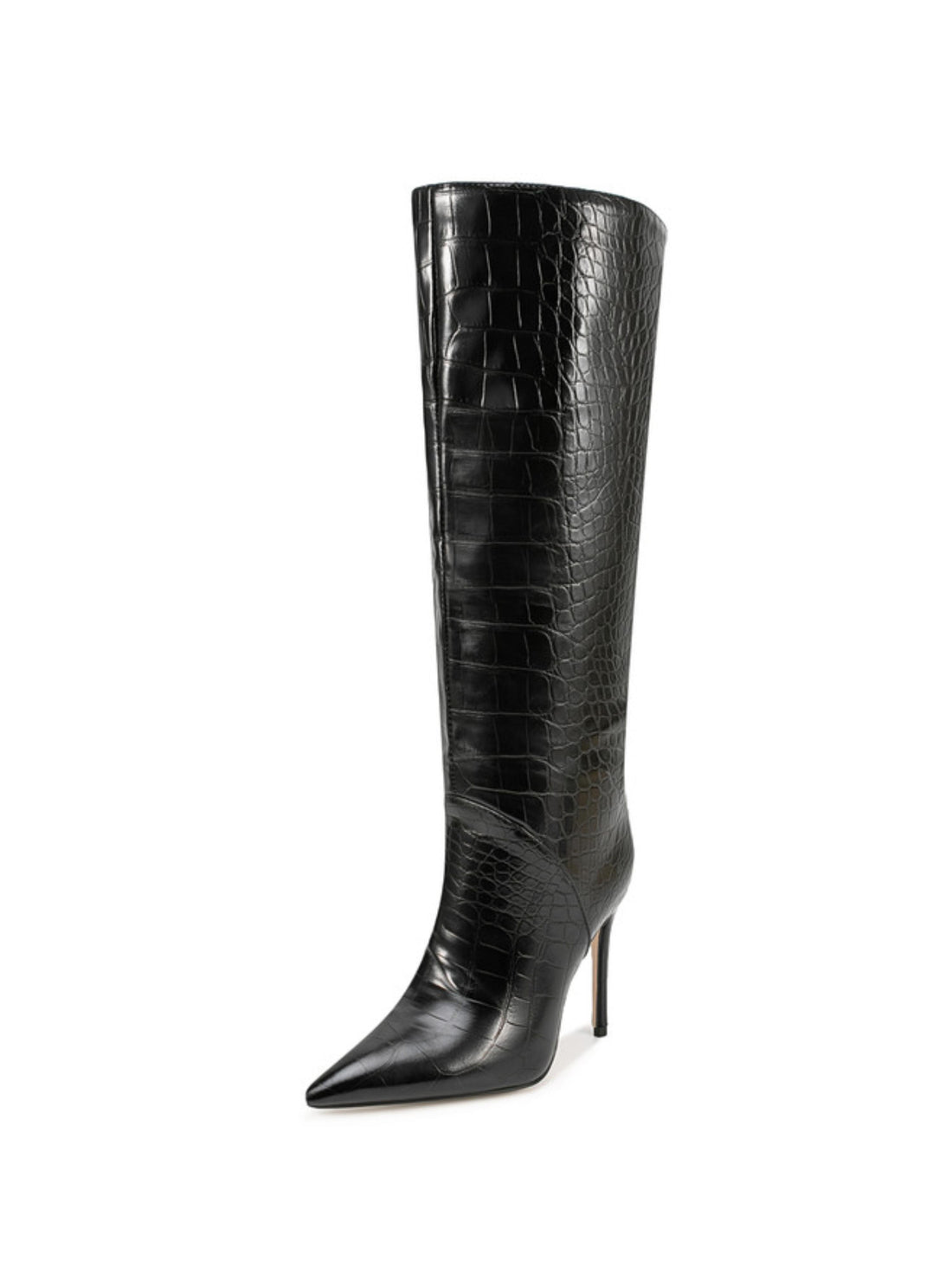 Black Croc-Embossed Stiletto Heels Tall Boots