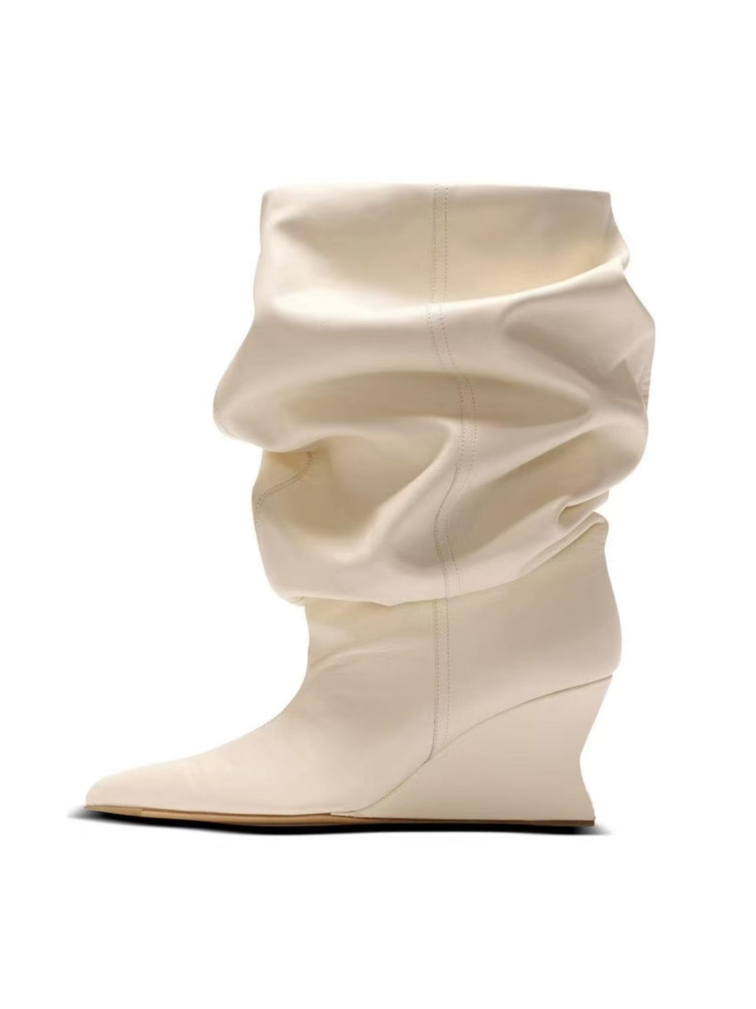Soft Beige Pointed Toe Slouchy Mid-Calf Wedge Boots for Women