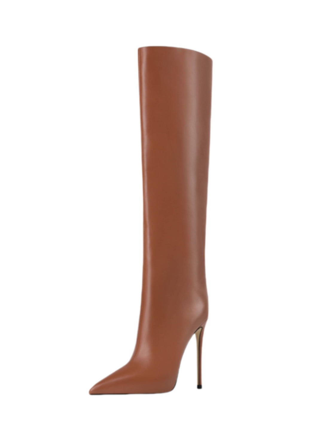 Caramel Brown Knee-High Heeled Pointed Toe Boots for Women