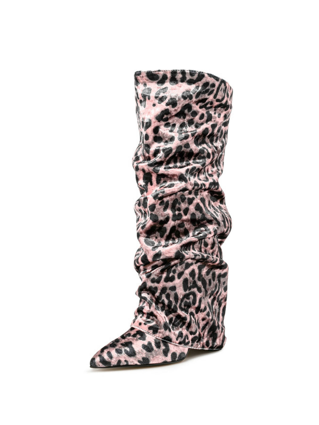 Pink Leopard Print Slouchy Knee-High Fold Over Boots Women