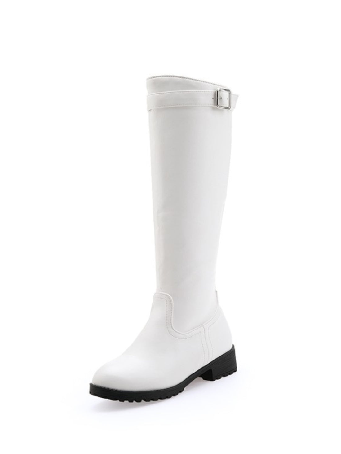 Elevate your style with these White Round Toe Knee-High Boots designed to command attention. Crafted...