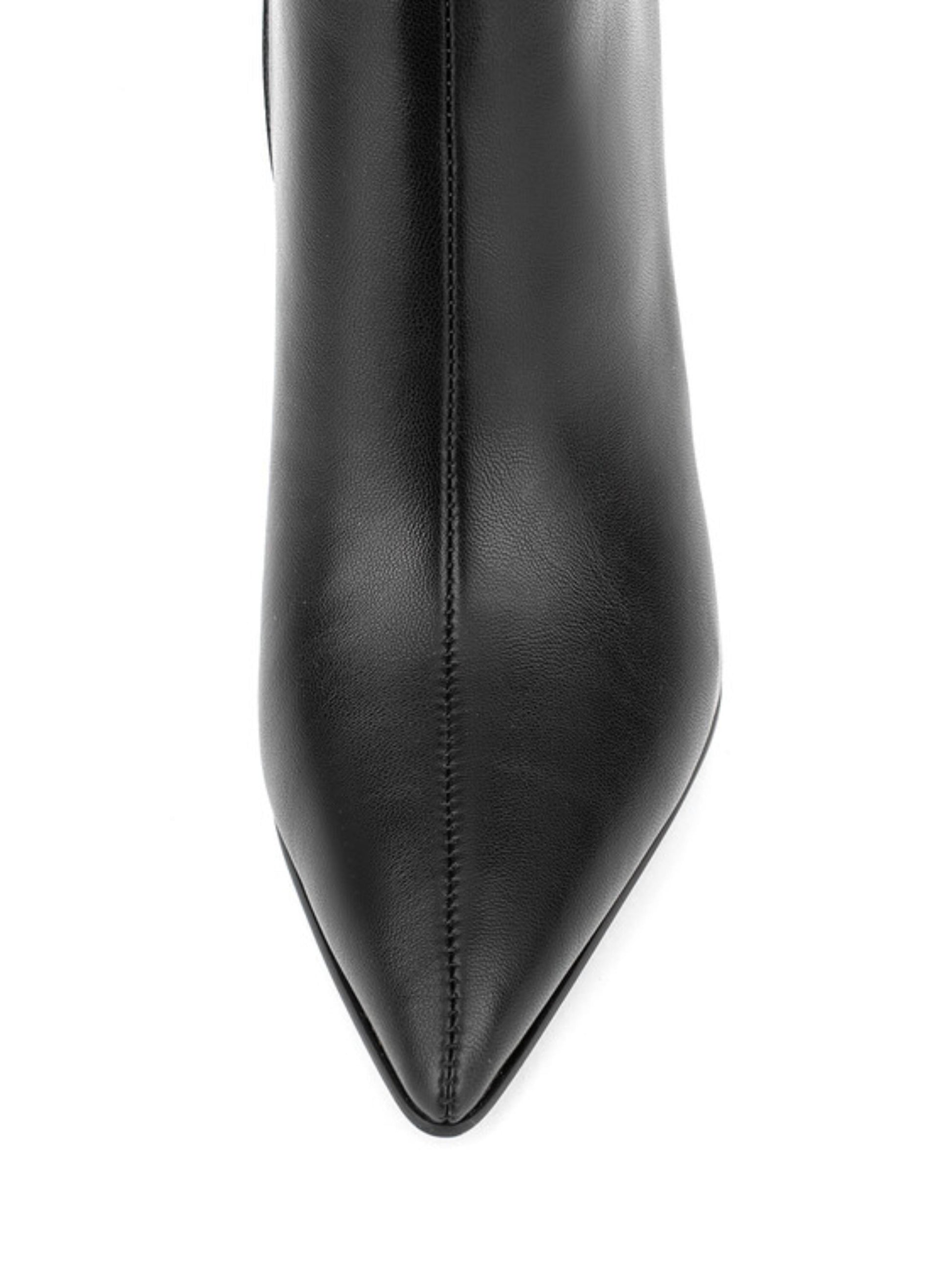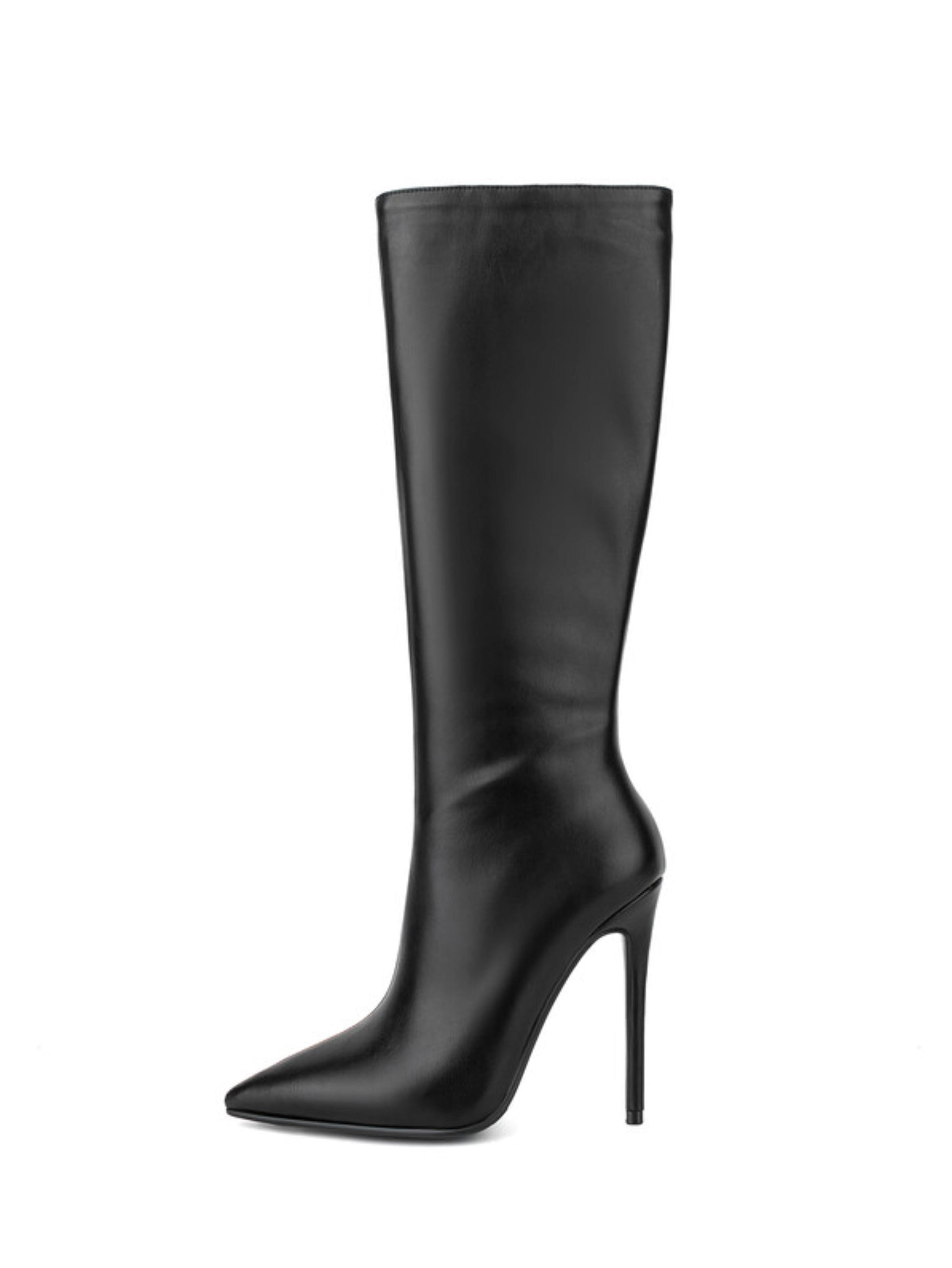 Black Faux Leather Pointed Toe Long Boots for Women