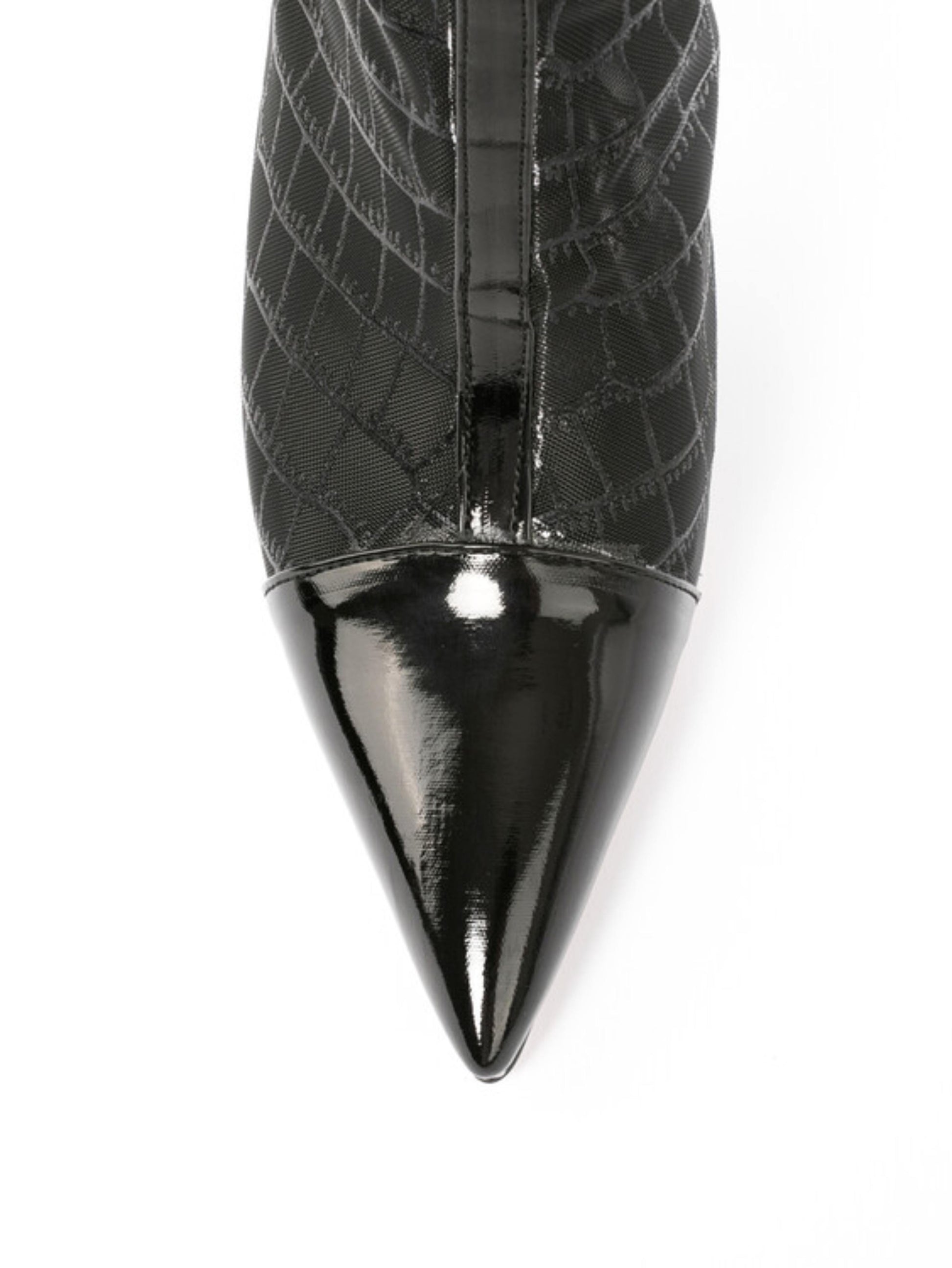 Command the night with these Black Mesh Heeled Ankle Boots for Women. Featuring a striking stiletto heel and sleek patent leather accents, they fuse edgy style with high-impact glamour. The back zipper ensures a secure fit, while the mesh panels add a provocative, revealing touch. Perfect for making a bold statement, these boots are designed to turn every step into an unforgettable moment.