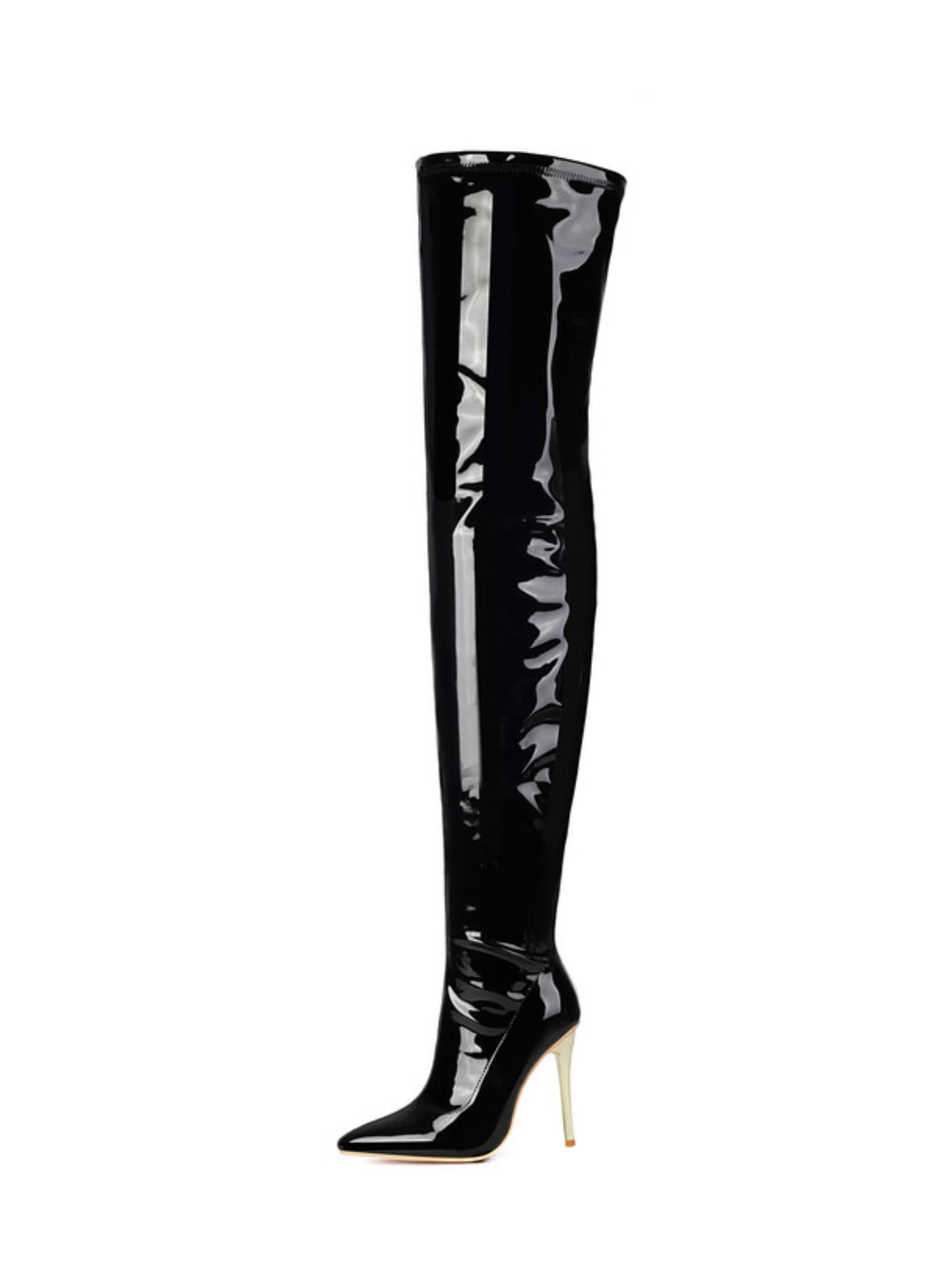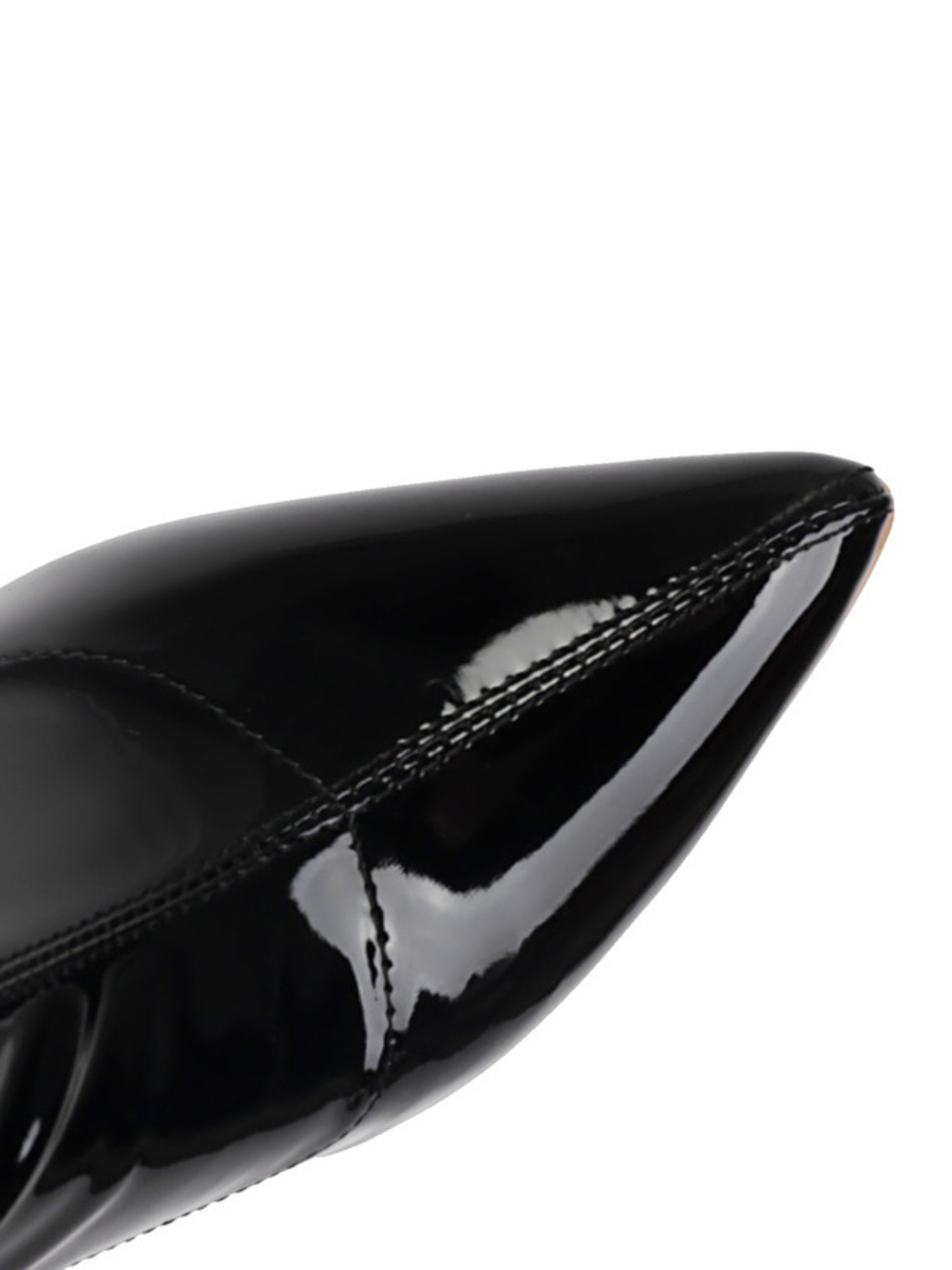 Experience the ultimate in leg-lengthening luxury with these Black Pointed Toe Over-The-Knee Boots. Crafted from sleek patent leather, they deliver an instantly polished, high-impact look that commands respect. The dual slip-on and side zipper design gives you flexibility—wear them your way, every day. A dramatic pointed toe and ultra-high stiletto heel create an elongated silhouette that flatters and empowers, while the slouchy fit adds modern edge to classic sophistication. These boots aren't just footwear; they're your secret weapon for looking and feeling absolutely unstoppable.