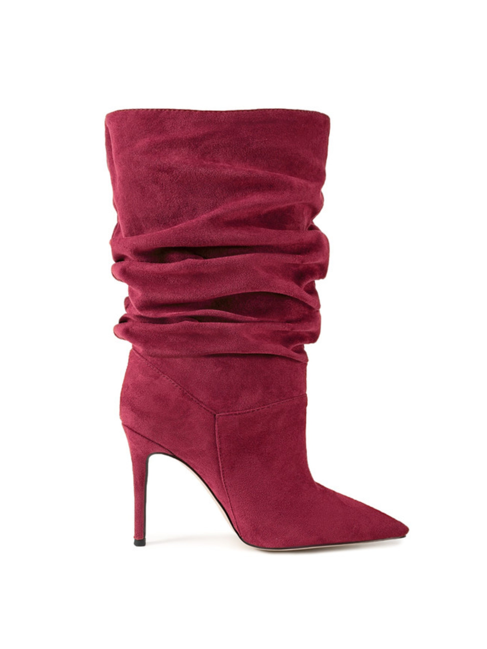 Burgundy Vegan Suede Stiletto Mid-Calf Slouch Boots Women