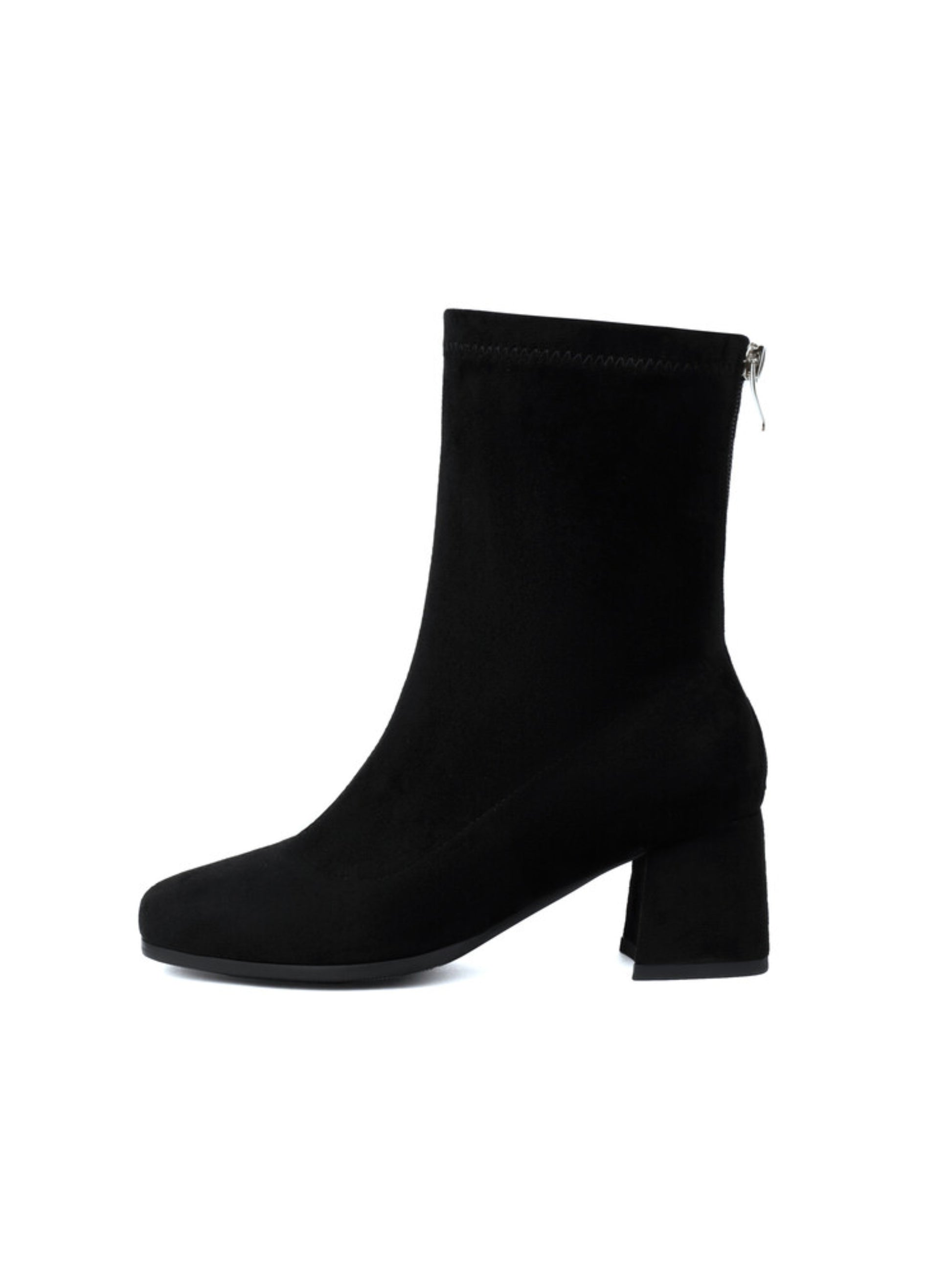 Master everyday style with these practical black block heel ankle boots engineered for comfort and versatility. The soft faux suede construction provides a refined aesthetic while remaining easy to maintain, and the square toe offers a contemporary silhouette that suits modern wardrobes. The sturdy block heel delivers reliable support and stability, making these boots ideal for all-day wear without fatigue. The convenient back zipper ensures quick dressing while maintaining a clean front profile. A dependable essential that seamlessly transitions from work to weekend, these boots combine functionality with understated sophistication.