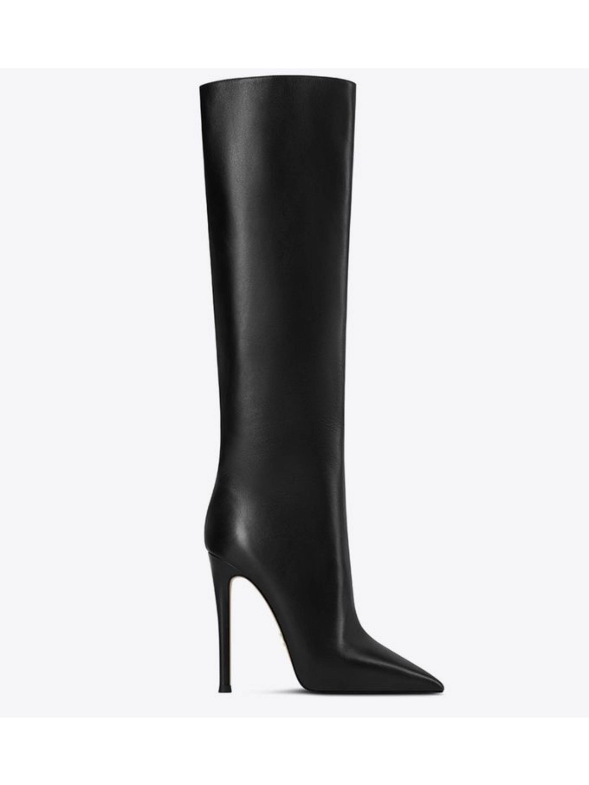 Classic, sleek, and endlessly versatile — these black knee-high boots are the ultimate statement of modern elegance. Featuring a refined pointed toe and high stiletto heel, they offer a polished silhouette that transitions effortlessly from day to night. A must-have staple for any sophisticated wardrobe.