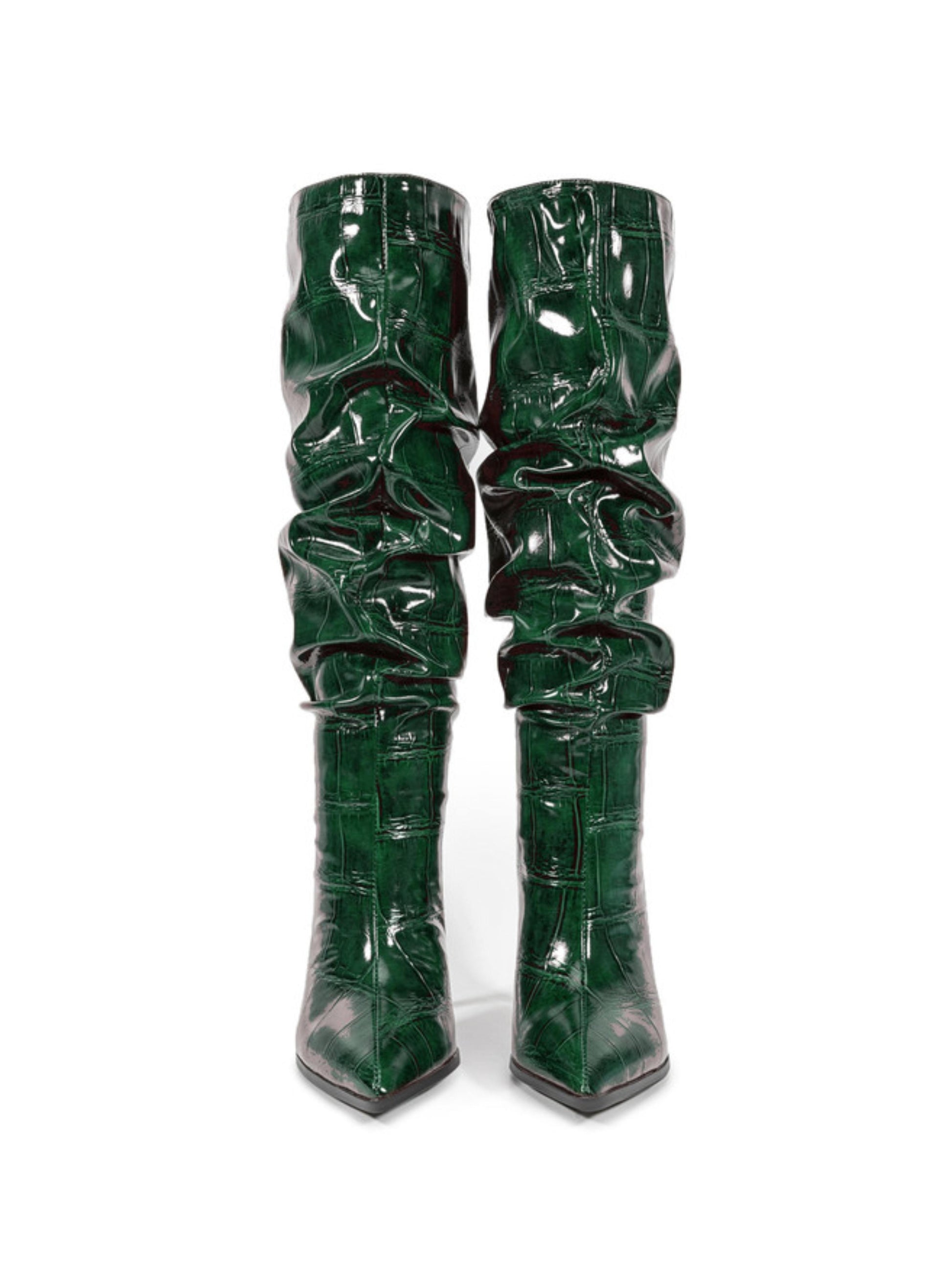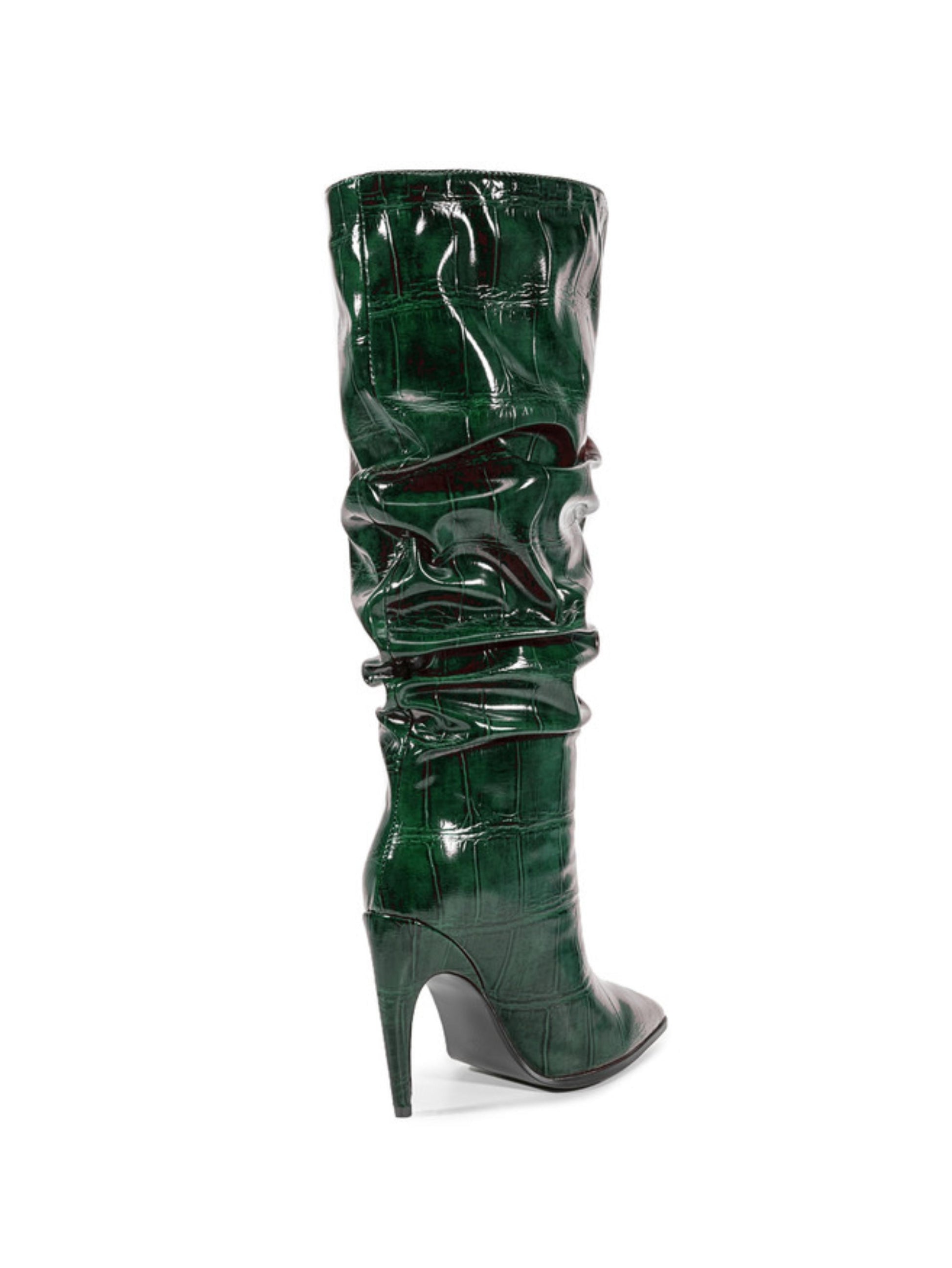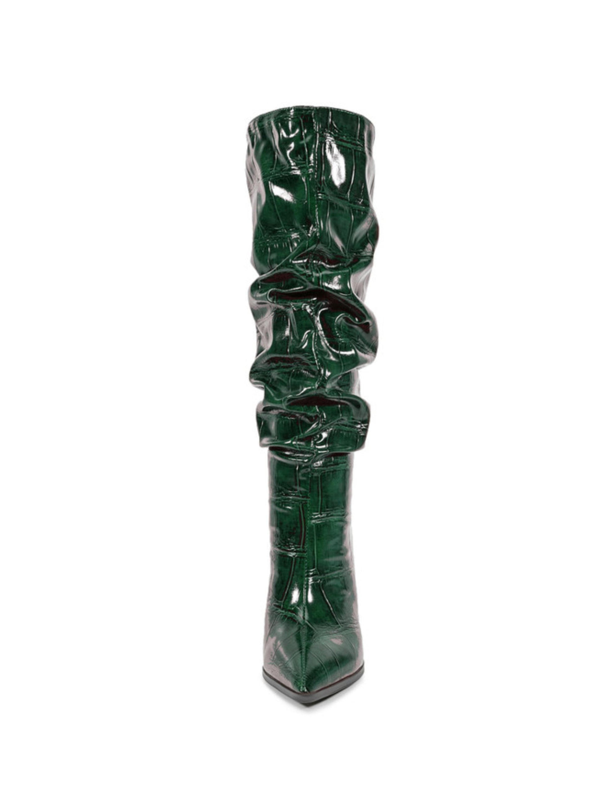 Emerald Green Croc-Embossed Slouch High-Heel Tall Boots