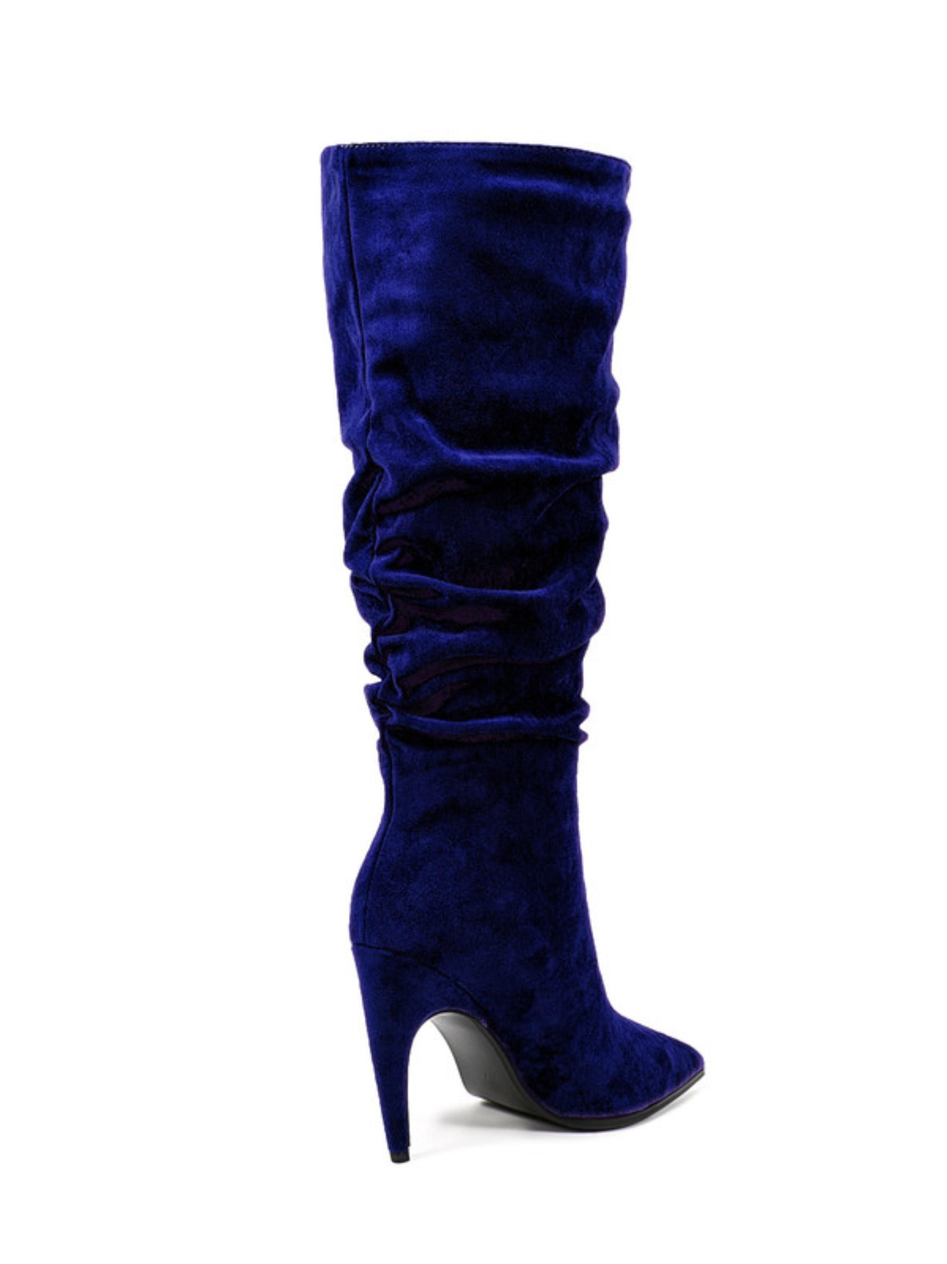 Navy Suede Slouchy Pointed Toe Knee-High Boots for Women