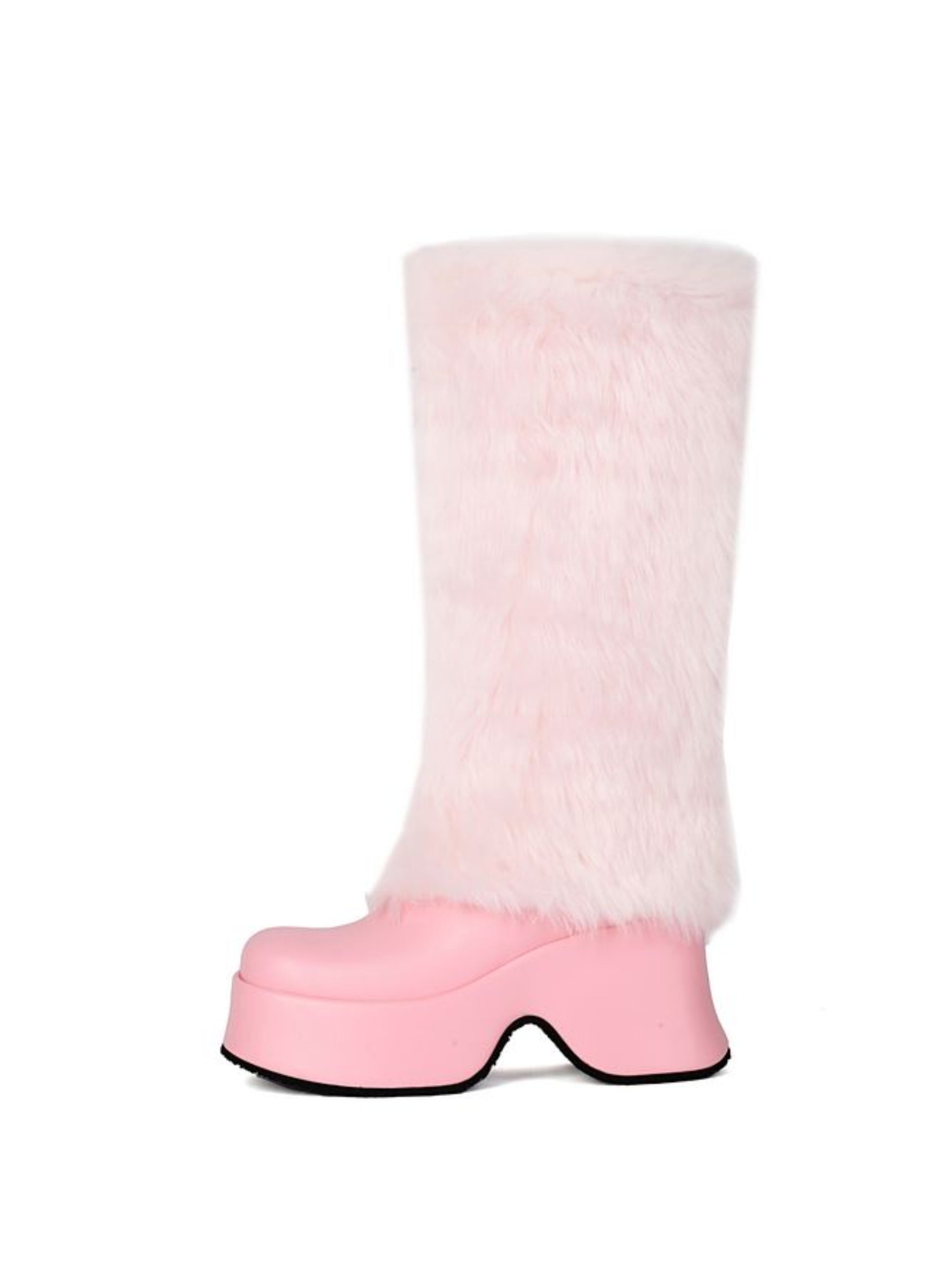 Make a bold statement with these striking pink slip-on platform tall boots that refuse to blend in. Featuring sleek faux leather construction paired with cozy faux fur accents, they deliver attitude and comfort in equal measure. The square toe and elevated platform heel command attention while the effortless slip-on design keeps you moving without compromise. Designed for those who embrace their individuality and aren't afraid to turn heads wherever they go.
