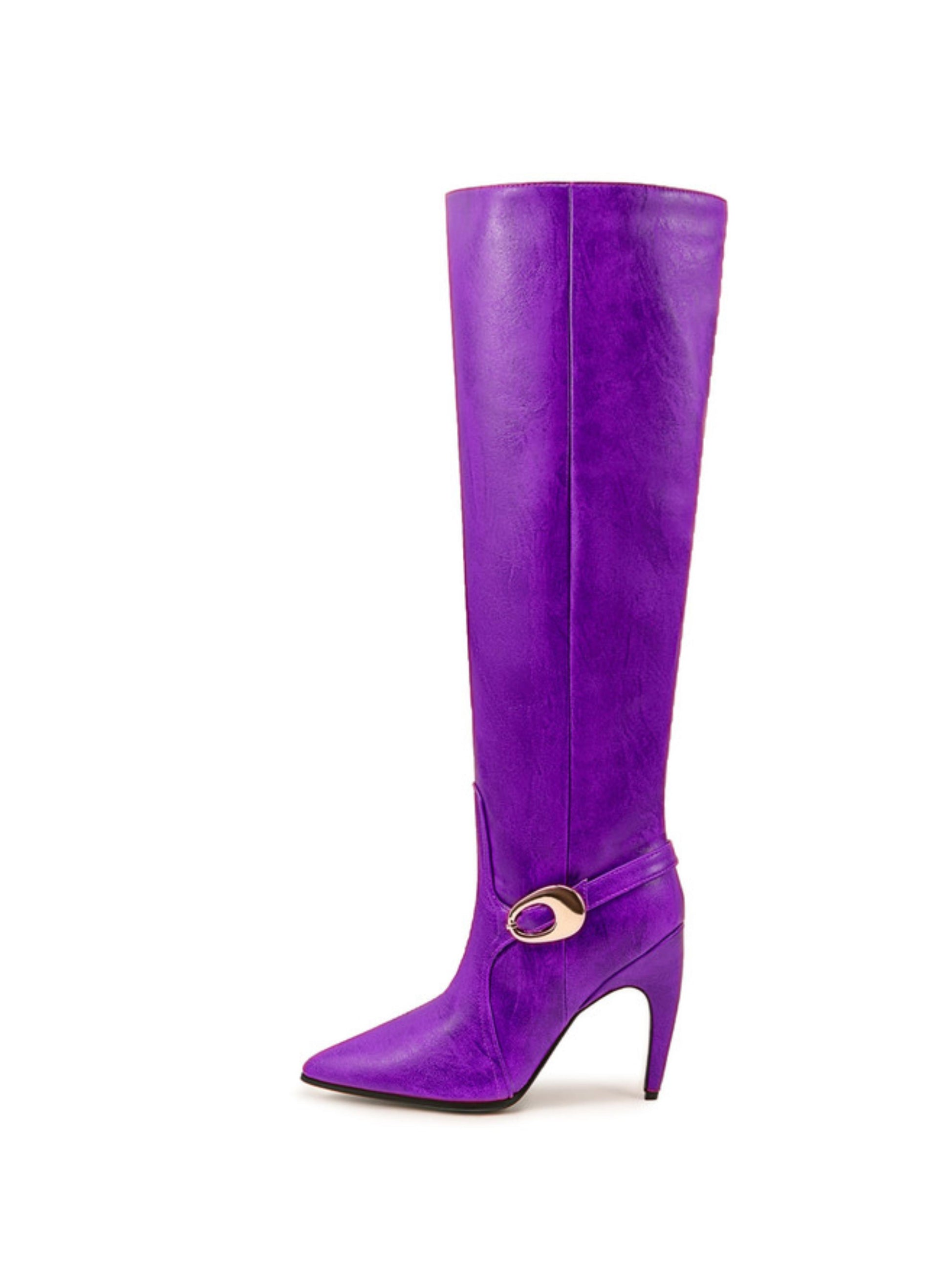 Purple Pointed Toe Women’s Buckled Over-the-Knee Boots