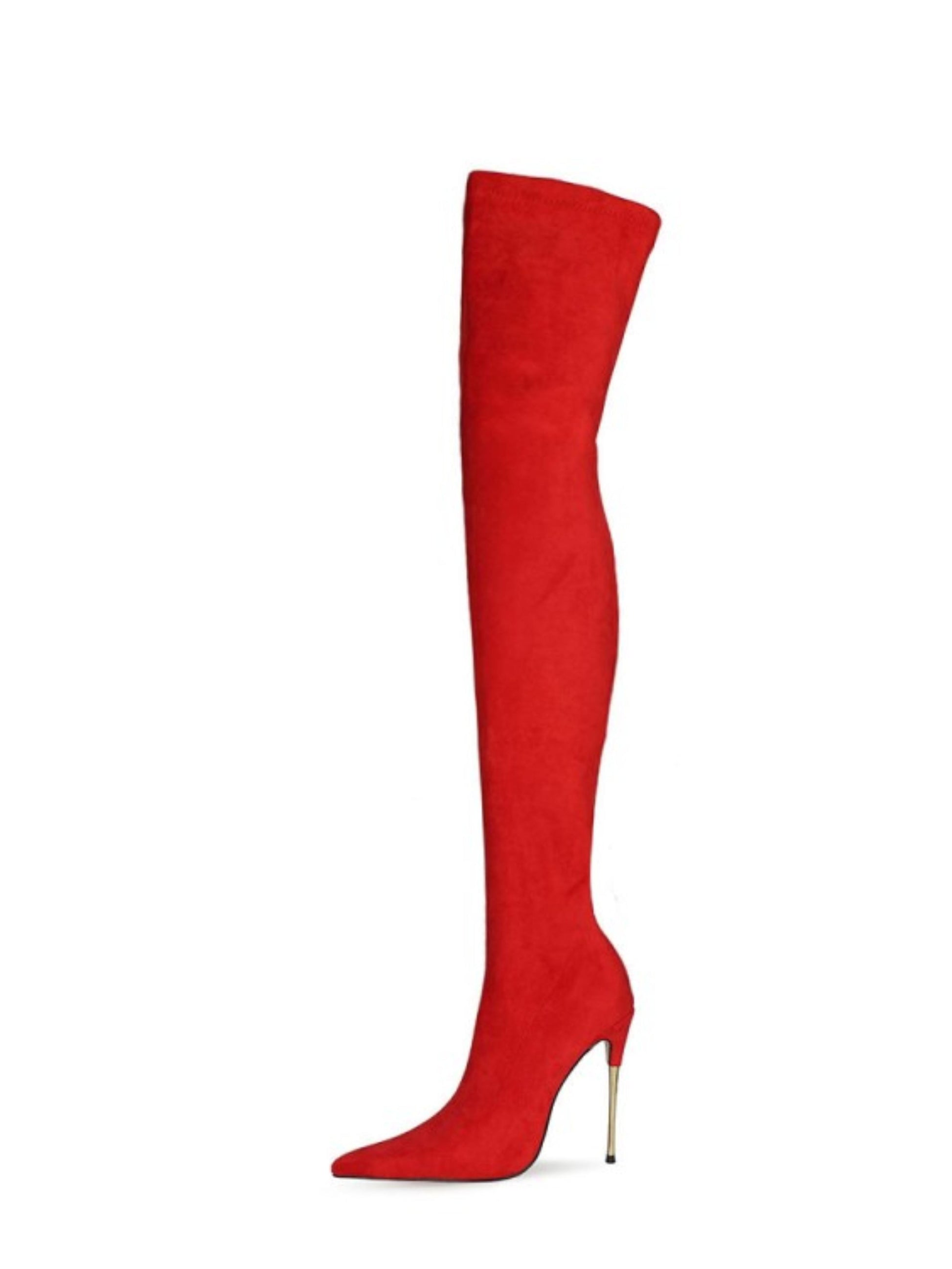 Red Stiletto Heels Lycra Thigh-High Boots for Women