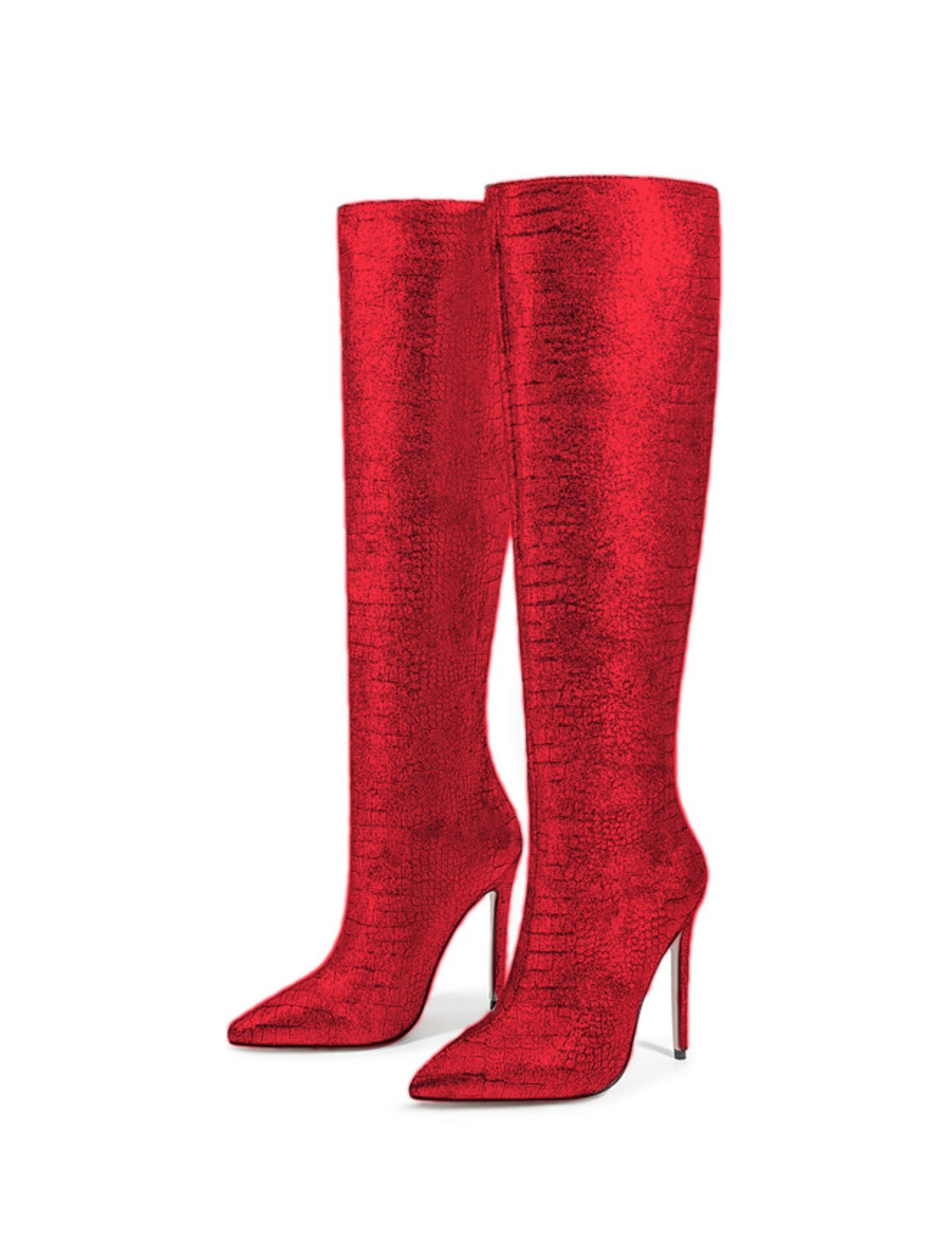 Shining Red Stiletto Embossed Women's Knee-High Boots