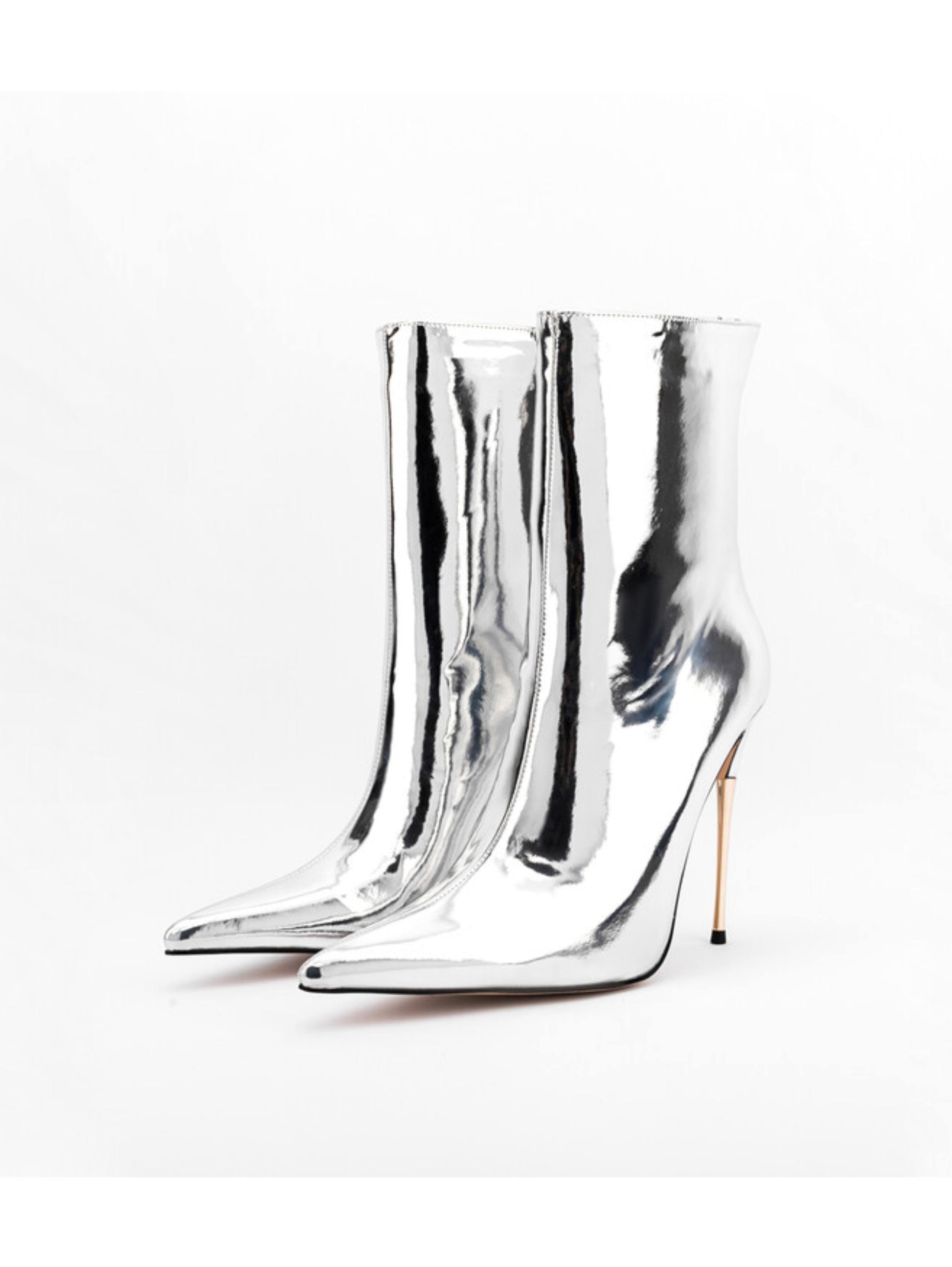 Silver Mirror Finish High Heel Ankle Boots for Women