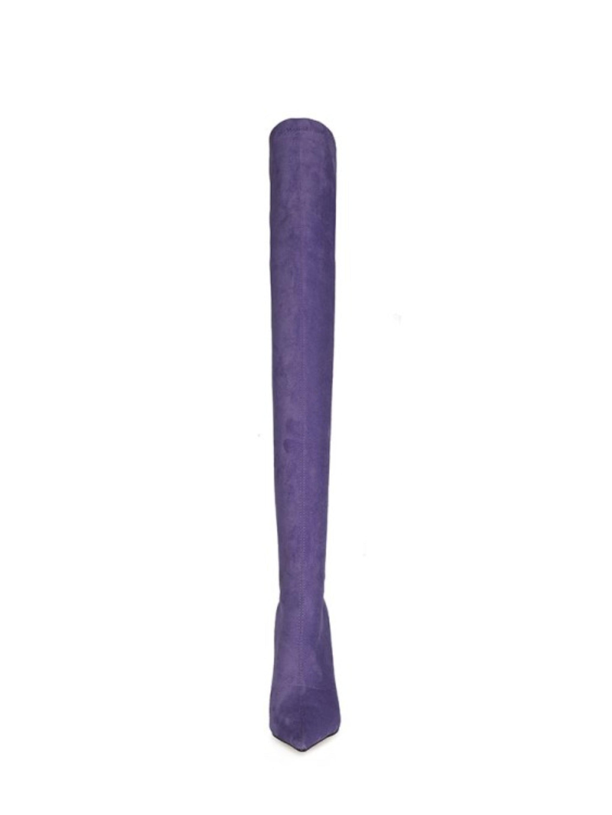 The Amatist Lycra Thigh-High Heeled Boots for Women feature a rich amatist hue and a sleek, stretchy lycra material for a contoured, comfortable fit. Designed with a super high stiletto heel and slip-on style, these boots offer dramatic elevation and effortless wear, making them an elegant choice for standout, sophisticated looks.