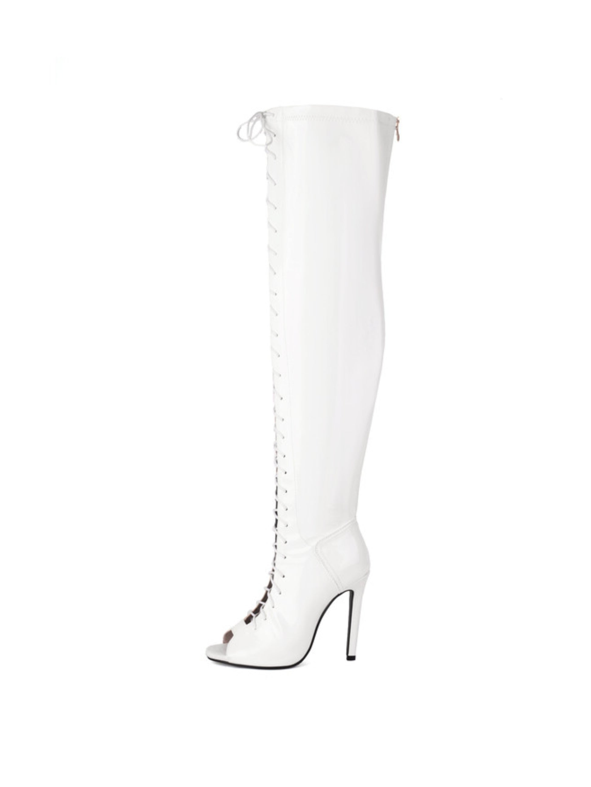 White Faux Leather Peep Toe Women's Thigh-High Boots