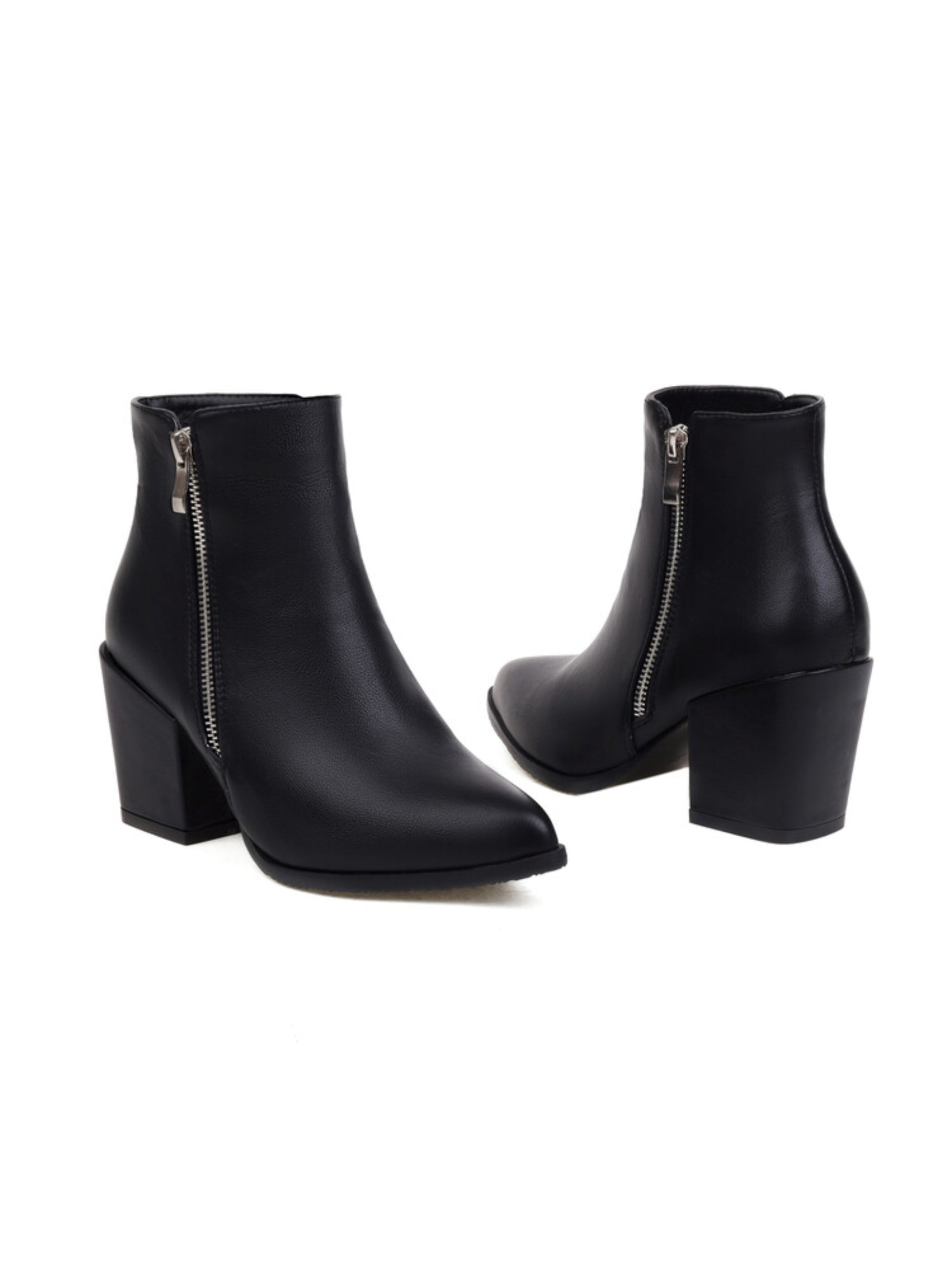 Master versatility with these black almond toe ankle boots, a refined essential for any wardrobe. Constructed from quality faux leather, they offer durability and easy maintenance without compromising on style. The pointed toe provides a flattering, elongated silhouette that works with various outfits, while the side zipper ensures quick, hassle-free dressing. The chunky mid-heel strikes the perfect balance between comfort and elevation, offering stability without sacrificing sophistication. These boots are engineered for those who demand both practicality and polished aesthetics in their everyday footwear.